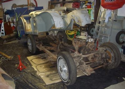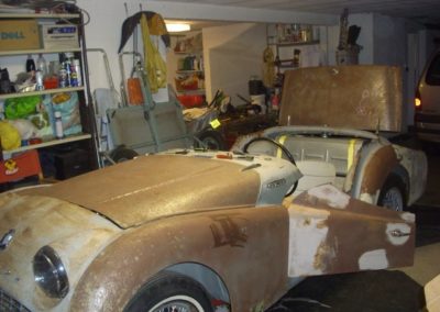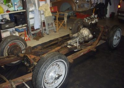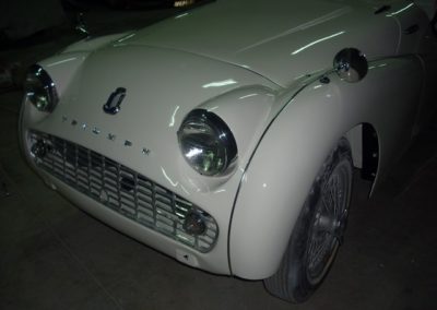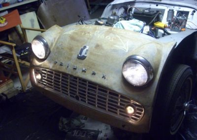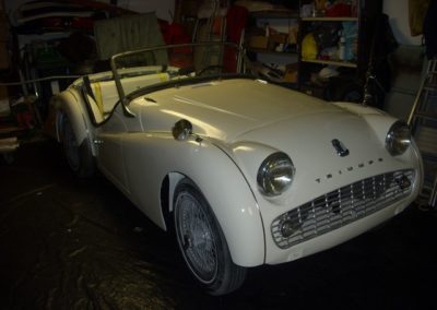 Le projet de La Triumph TR3 est nettement plus audacieux, puisqu’il s’agit d’une restauration complète du véhicule, jusqu’au chassis, mais aussi jusqu’aux coussinets de villebrequin…